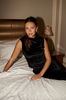 La coupe : Magnifique haut drapé en velours. Son tissu est doux et confortable, son col légèrement montant, et sa coupe ajustée offre une silhouette de rêve.